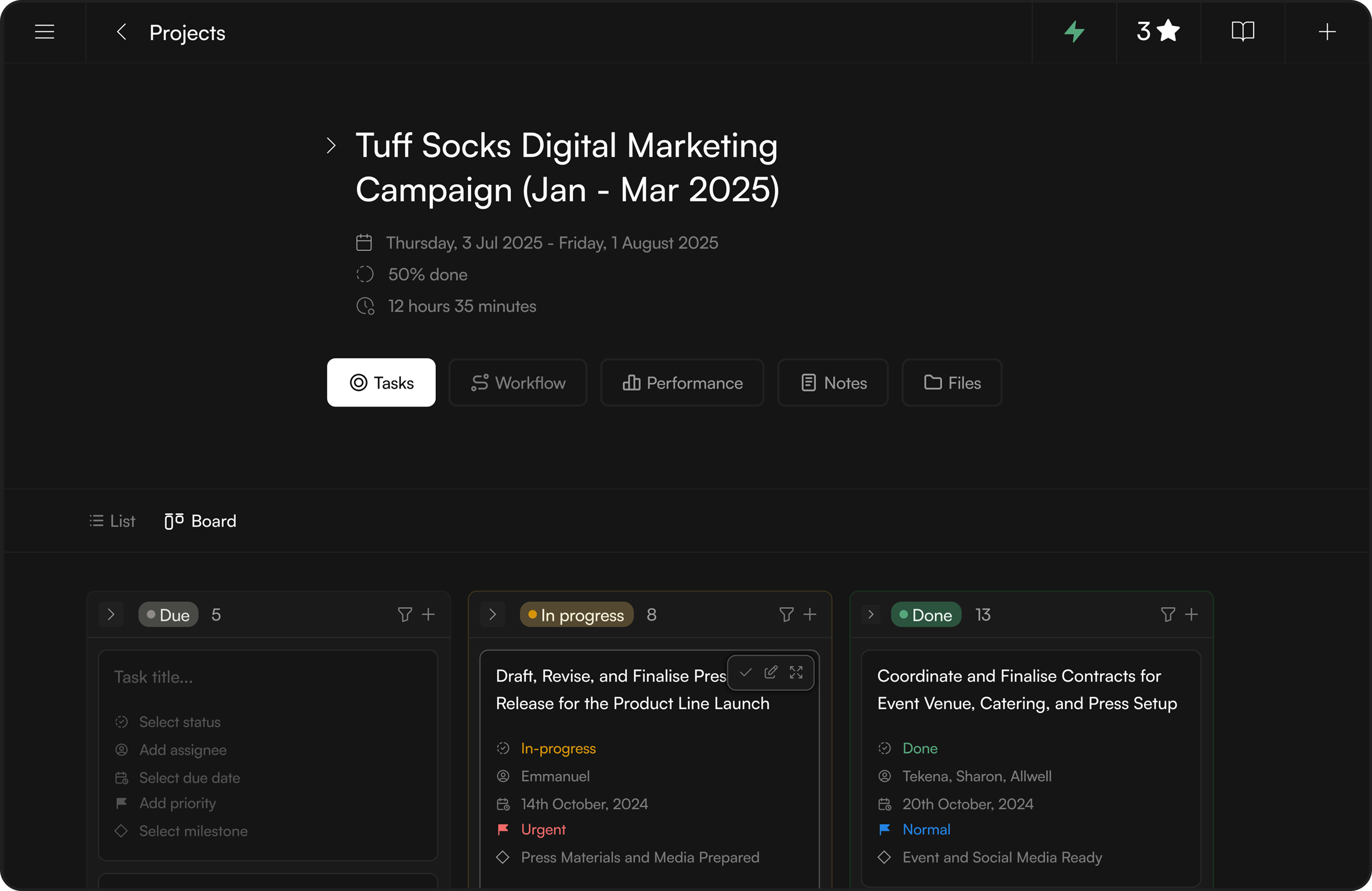Give your team a collaborative place to easily work together on projects and track progress easily.