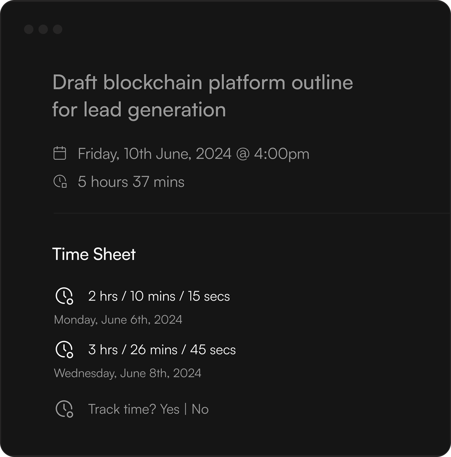 Easily record the time spent working on tasks and review logs to optimise schedules.